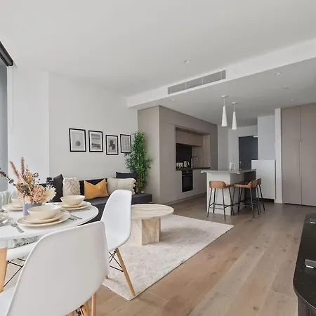 The 65 m² Luxury 2Br Apt Opposite Southern Cross Melbourne is located 2.4 km from Flinders Street train station and approximately a 5-minute walk from Festival Hall. 2.1 km from Chinatown, this 1-bedroom apartment comes with a fitness suite and an indoor swimming pool.